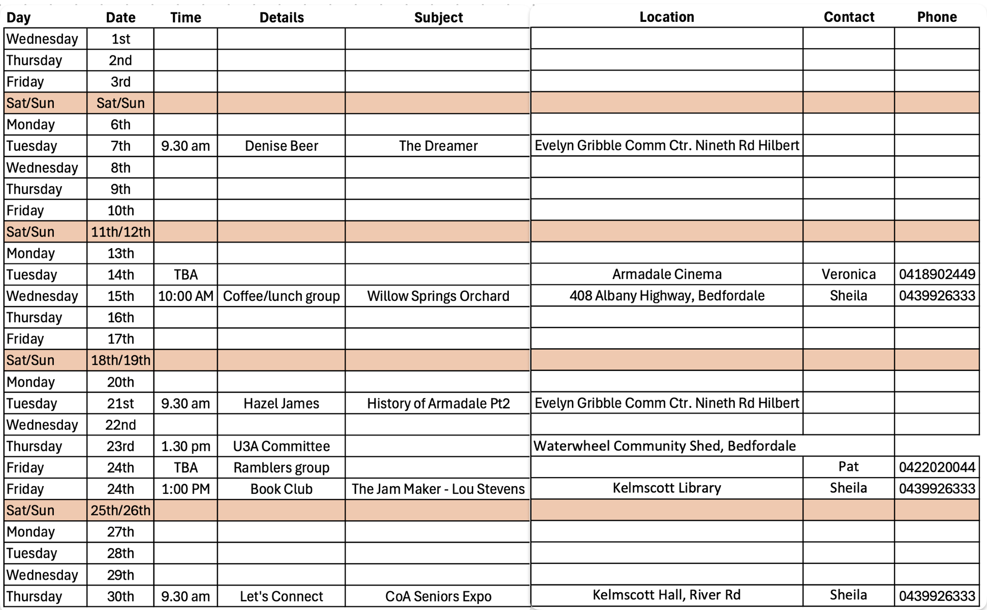 U3A Armadale Program April 2026